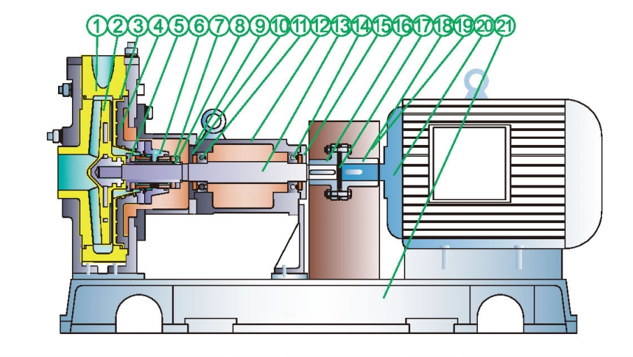 | ⑦Seal gland | 304/316/316L | ⑭Rear bearing | rolling bearing | ㉑Base plate | HT200 |